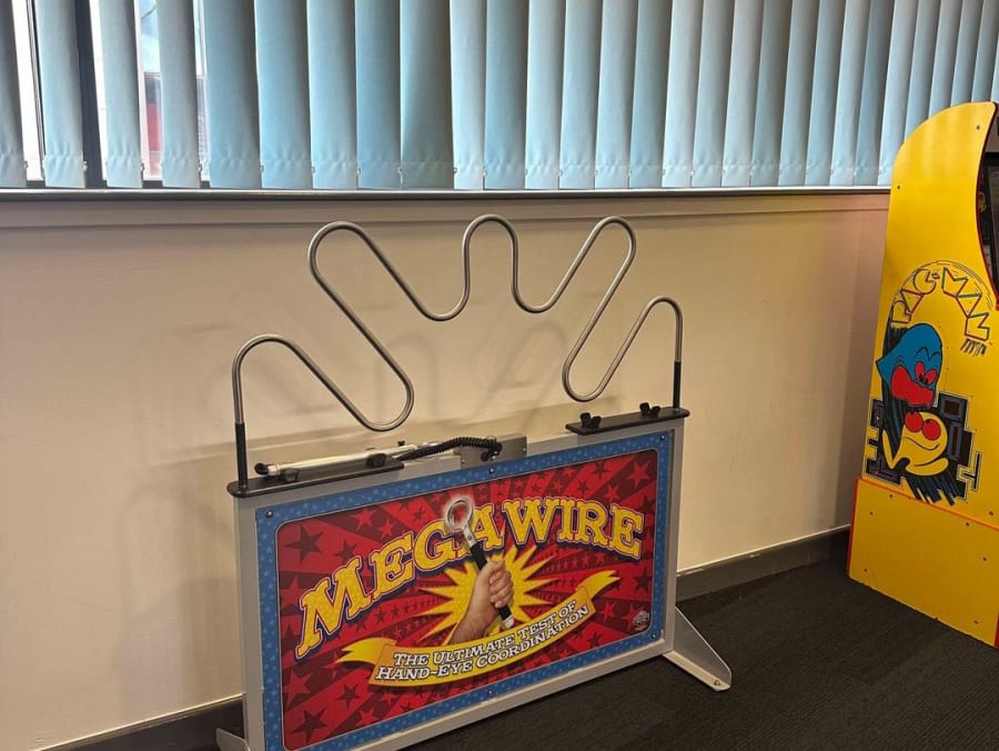 Size DOES matter! Megawire is the ultimate test of patience, whole body steadiness, and hand-eye co-ordination. Players attempt to navigate the handheld ring through 12 linear feet of tube on this massive 4 feet tall by 4 feet wide game.
