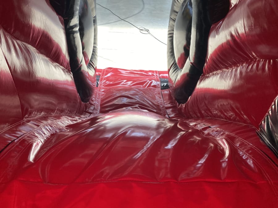 The colour scheme of the bouncy castle perfectly compliments the theme of the inflatable with black and red material used throughout.