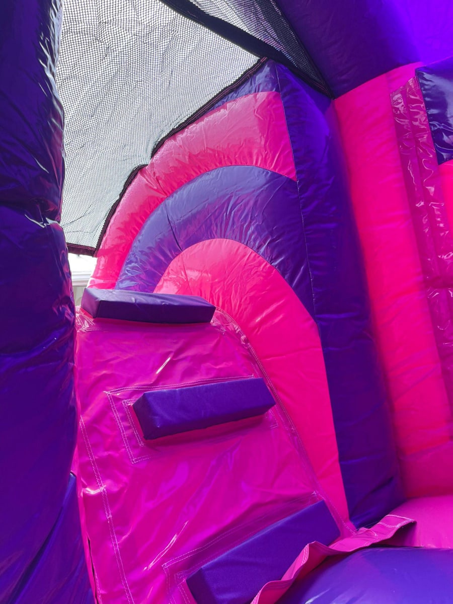This gorgeous pink & purple partytime front slide combo is perfect for a variety of events including birthday parties, christenings, wedding receptions, school fun days and much more.