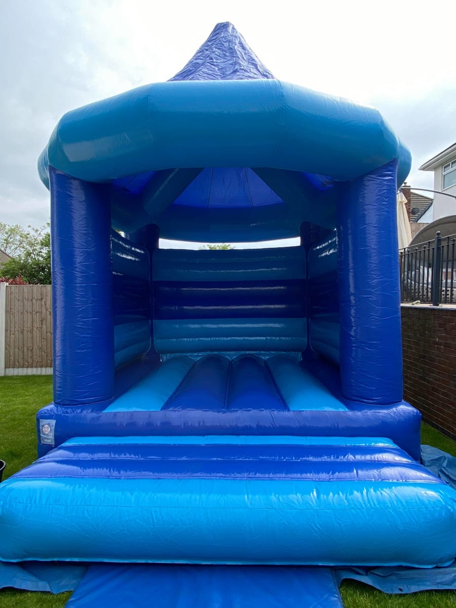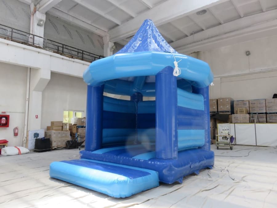 Featuring a vibrant combination of light and dark blue material, this bouncy castle stands out with its attractive colours and unique design. The spacious bouncing area allows kids to jump, bounce, and play to their heart's content, while the high roof provides ample headroom for added safety.