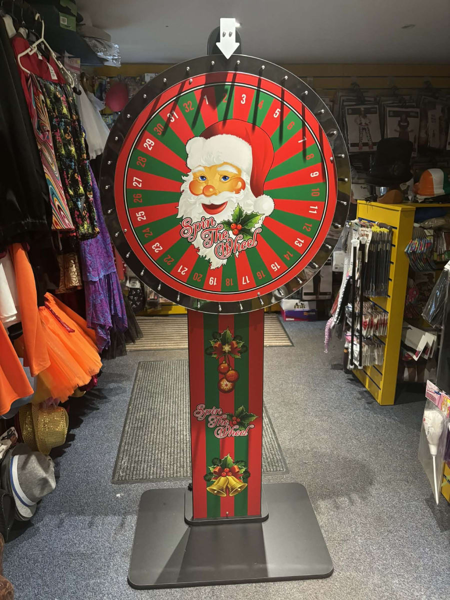 Please note: when you book this listing, you will receive the Christmas-themed prize wheel exactly as shown in the product images, complete with festive styling. If you’re looking for a different theme or a non-seasonal prize wheel, please make sure you book the relevant alternative listing on our website.