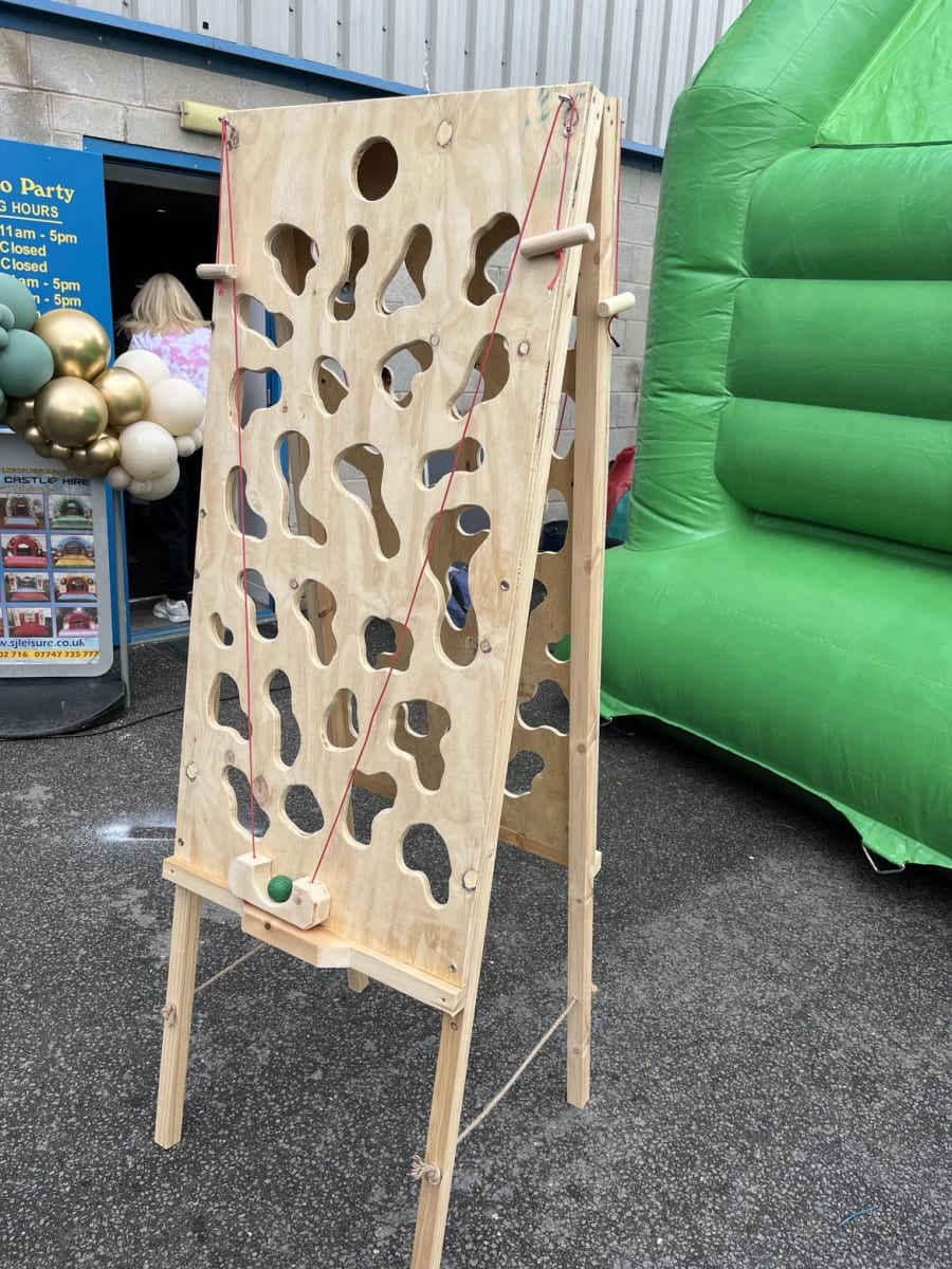 Great little add on for events. Especially golfing events where customers are hiring a mini golf etc. Easy to follow and play, simply use the two handles to navigate the board and transport the ball from the bottom of the board to the hole at the top without falling into the bunkers (holes). A steady hand and patient approach is required to complete.