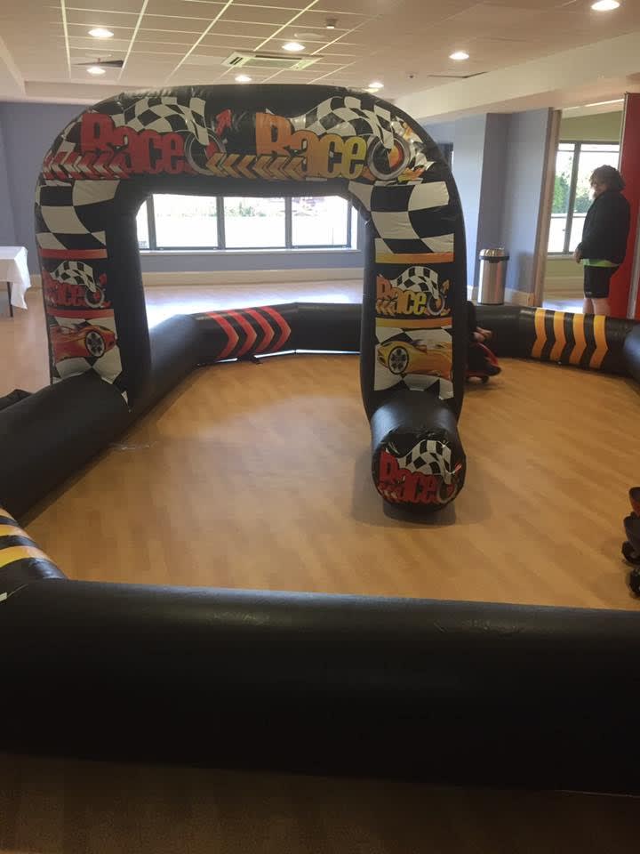 When hiring this product you'll receive an inflatable track and 5 didi cars, so multiple children can race and compete at the same time.