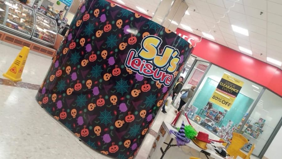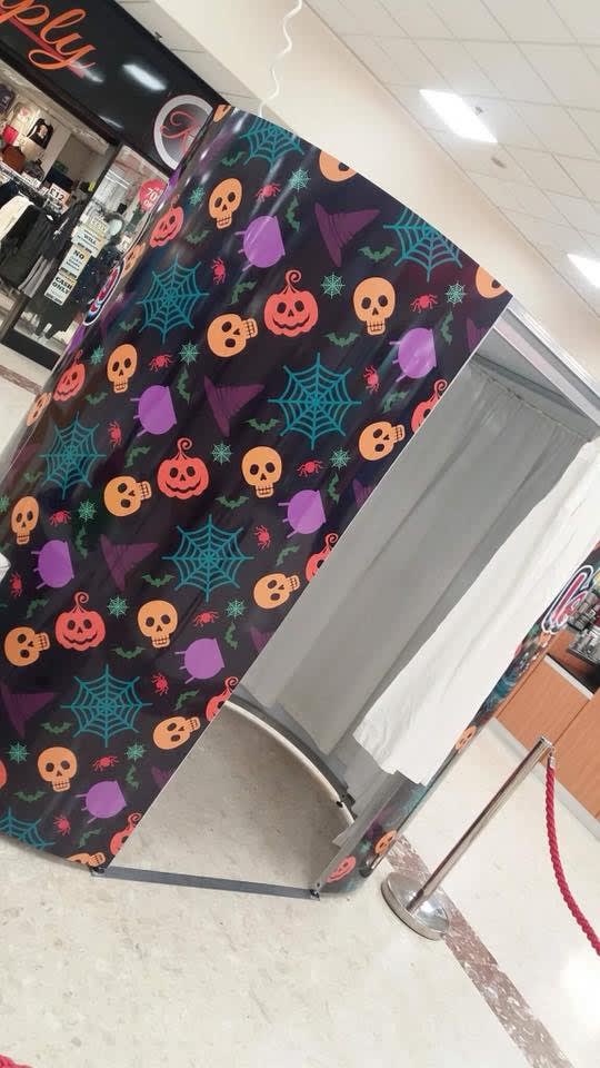 - Oval photo booth complete with Halloween pumpkins & skulls skin