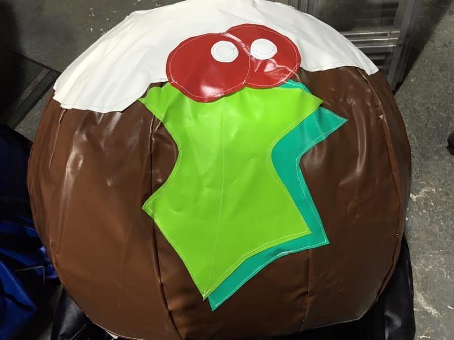 The rodeo Christmas pudding comes complete with inflatable bed, safety operator and inflatable canopy.