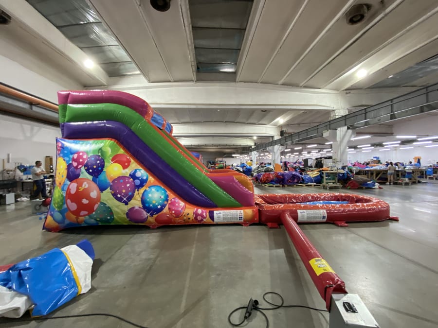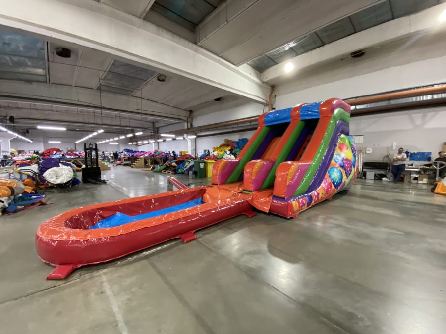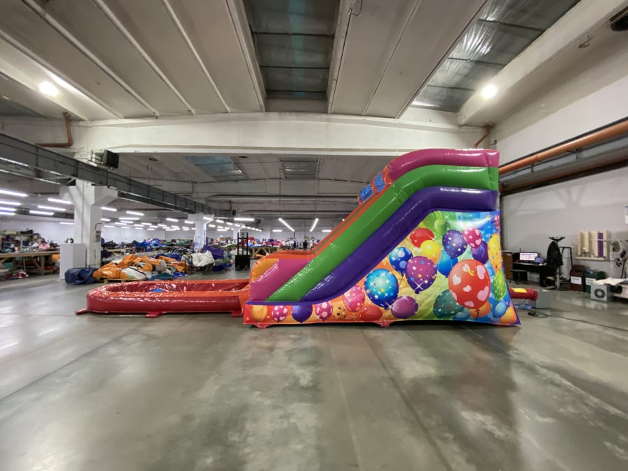 Finished in vibrant orange, red, pink, and green panels with cheerful digital party-themed artwork, this inflatable water slide makes a stunning centrepiece at any event. Designed and manufactured in line with UK and European inflatable safety standards (BS EN14960), it provides a safe and enjoyable experience for children while giving parents peace of mind.